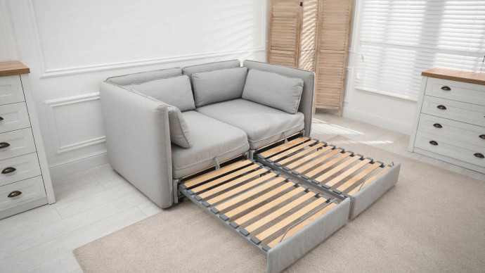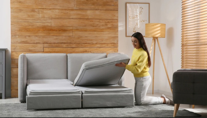 - Проверьте плавность механизма. Разложите и сложите диван несколько раз — качественные модели не скрипят и не заедают.